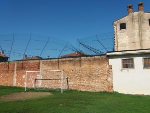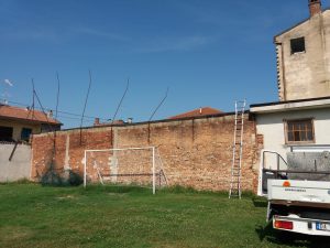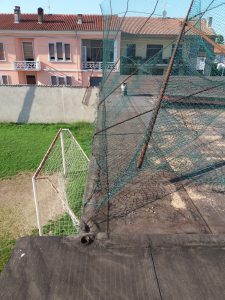 Purtroppo nel 2017, il violento vento che si era abbattuto sulla città, aveva completamente piegato la rete sul lato Ovest. L’operazione non è stata facile, ma ci siamo riusciti.