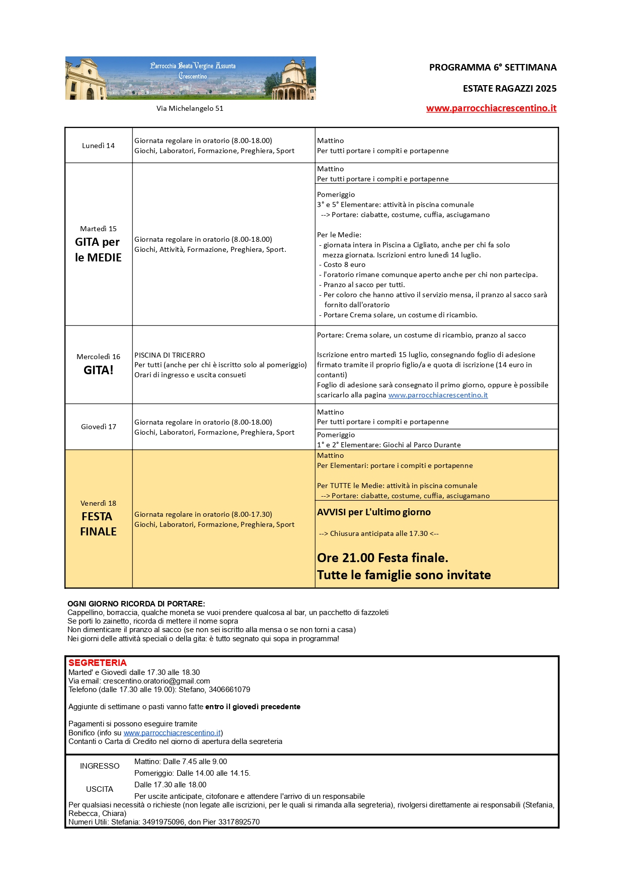 PROGRAMMA 5a SETTIMANA ESTATE RAGAZZI 2025